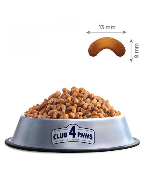 CLUB 4 PAWS CAT za odrasle mačke sa piletinom je kompletna suva premium hrana, pažljivo formulisana kako bi zadovoljila nutritivne potrebe odraslih mačaka. Sadrži visok procenat piletine i pažljivo izbalansirane hranljive materije koje podržavaju zdravlje i vitalnost vašeg ljubimca.