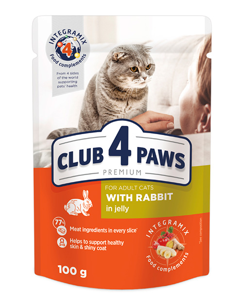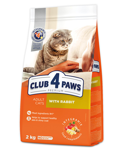 CLUB 4 PAWS CAT za odrasle mačke sa zečetinom je kompletna suva premium hrana za svakodnevnu ishranu odraslih mačaka. Bogata je visokokvalitetnim mesnim sastojcima i obogaćena esencijalnim vitaminima i mineralima, pružajući savršenu ravnotežu hranljivih materija za zdravlje, vitalnost i zadovoljstvo vašeg ljubimca.